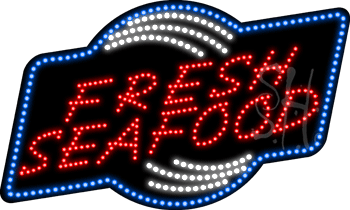 The Sign Store L100-9822 18 x 30 x 1 in. Fresh Seafood Animated LED Sign - Blue, Red & White