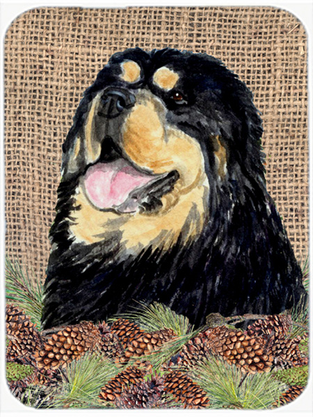 Caroline's Treasures SS4101LCB Tibetan Mastiff on Faux Burlap with Pine Cones Glass Cutting Board Large Decorative Tempered Glass Kitchen Cutting and Serving Board Large Size Chopping Board
