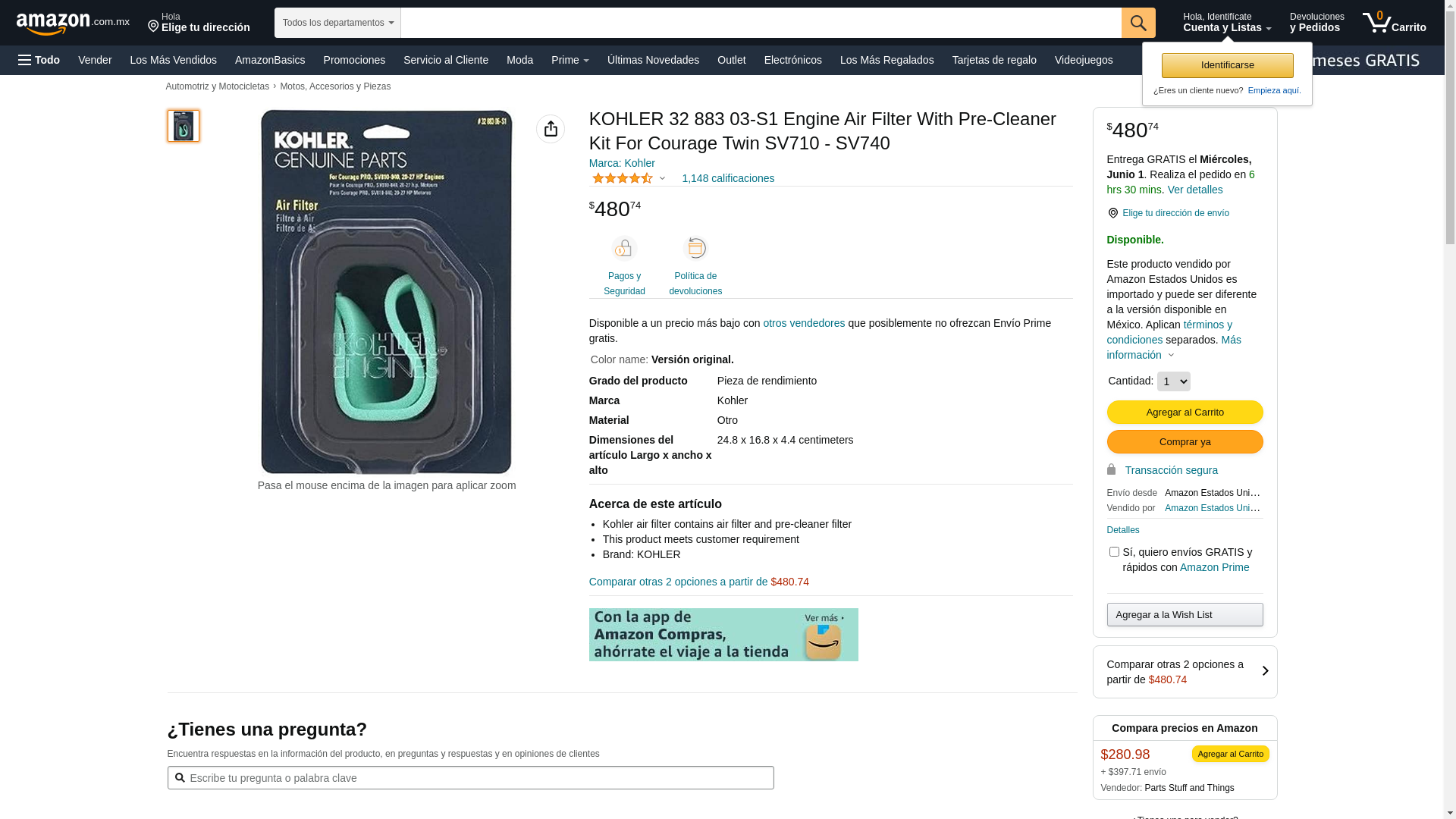 - Brand New Genuine Kohler Air Filter & Pre Filter Set... We are an Authorized Kohler Dealer... Air Filter & Pre Filter Set Genuine Kohler Part # 32-083-03-S & 32-083-05-S Width: 4-3/8" Length: 5-5/8" Height: 1-3/4" Fits Specific Kohler Courage SV710-SV740 Model Engines Genuine OEM Kohler Part If you need assistance locating correct part, Please email Model, Spec and Serial numbers of your engine and we will gladly look up correct parts