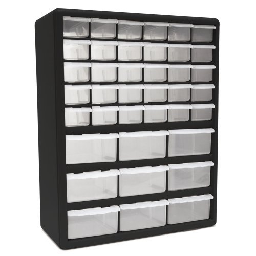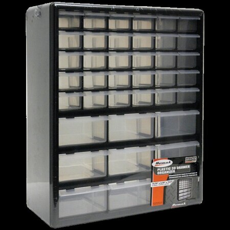 - Parts Organizer: This 39 Drawer Parts Organizer is great for organizing small hardware accessories in the shop or for crafts supplies; Comes with 30 small drawers and 9 large drawers