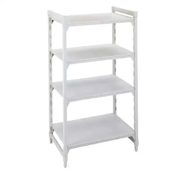 Cambro CPU183064S4480 Camshelving Premium Starter Unit, 4-Tier (4) Solid Polypropylene Shelf Plates, (2) Pre-Assembled Post Kits, (8) Traverses and Molded-in Dovetails
