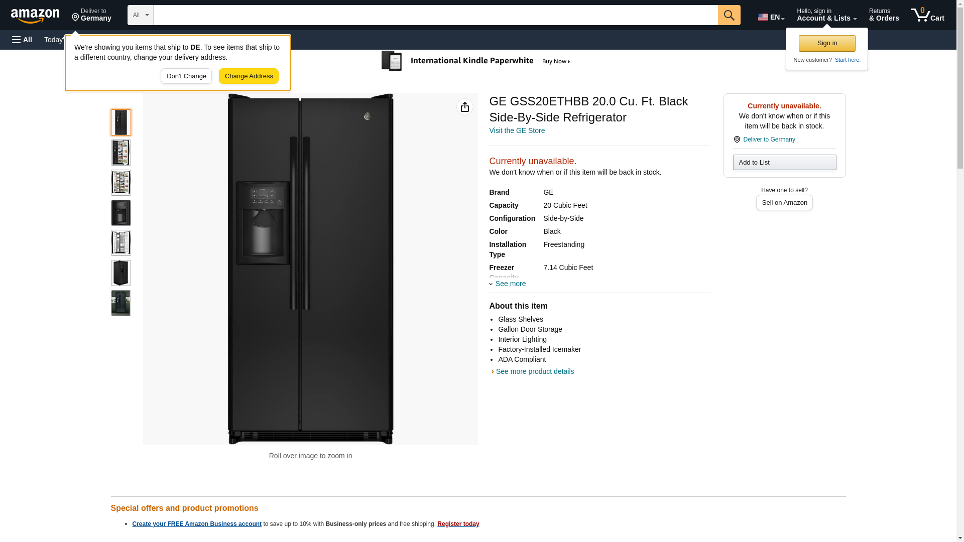GE GSS20ETHBB 20.0 Cu. Ft. Black Side-By-Side Refrigerator