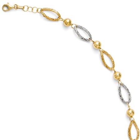 Dimensions: Chain Length:7.00in | Chain Width:8.00mm <br /> <br />Polished <br />14K Two-tone <br />Fancy lobster <br />Textured <br /> <br />**If you would like additional information regarding this product, feel free to contact us. Our friendly Jewelrypot Sales Representatives will be more than happy to provide you any additional details** <br /> <br />Jewelrypot is a 40 year old jewelry business located in the Jewelry District of Los Angeles, CA. The founder of Jewelrypot is one of Southern Californias largest jewelry wholesalers with over 30 years of experience. As a result, Jewelrypot customers are guaranteed to receive the latest and most fashionable jewelry designs at an affordable price. All diamonds used in our jewelry are conflict free and 100% in compliance with the Kimberly Code of Conduct. <br /> <br />Jewelrypot is dedicated towards providing you with the best quality, service, and prices of fine diamond, gemstone, pearl, and silver jewelry. We now boast a wide offering of over 70,000 styles of jewelry, ranging from diamond studs to fancy multi-sapphire rainbow bracelets.