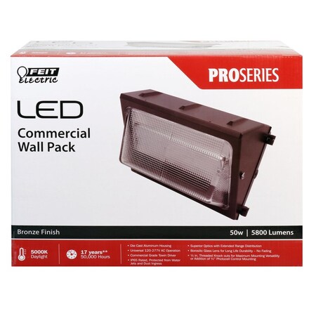 Feit Electric 15" LED Commercial Wall Pack, 50W, 5,800 Lumens, 5000K, Bronze Finish, 50,000 Hours Pack of 2