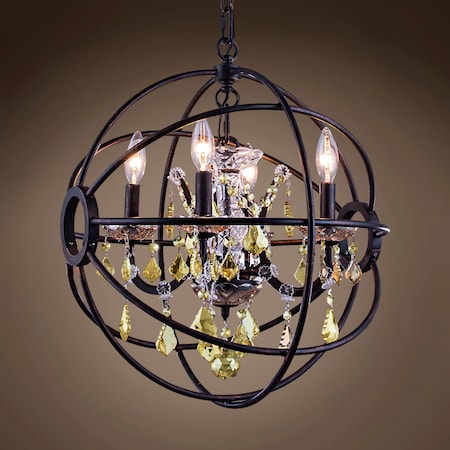Foucault'S Orb 4 Lt 17" Dark Bronze Pendant with Golden Teak Crystal & Led Bulb