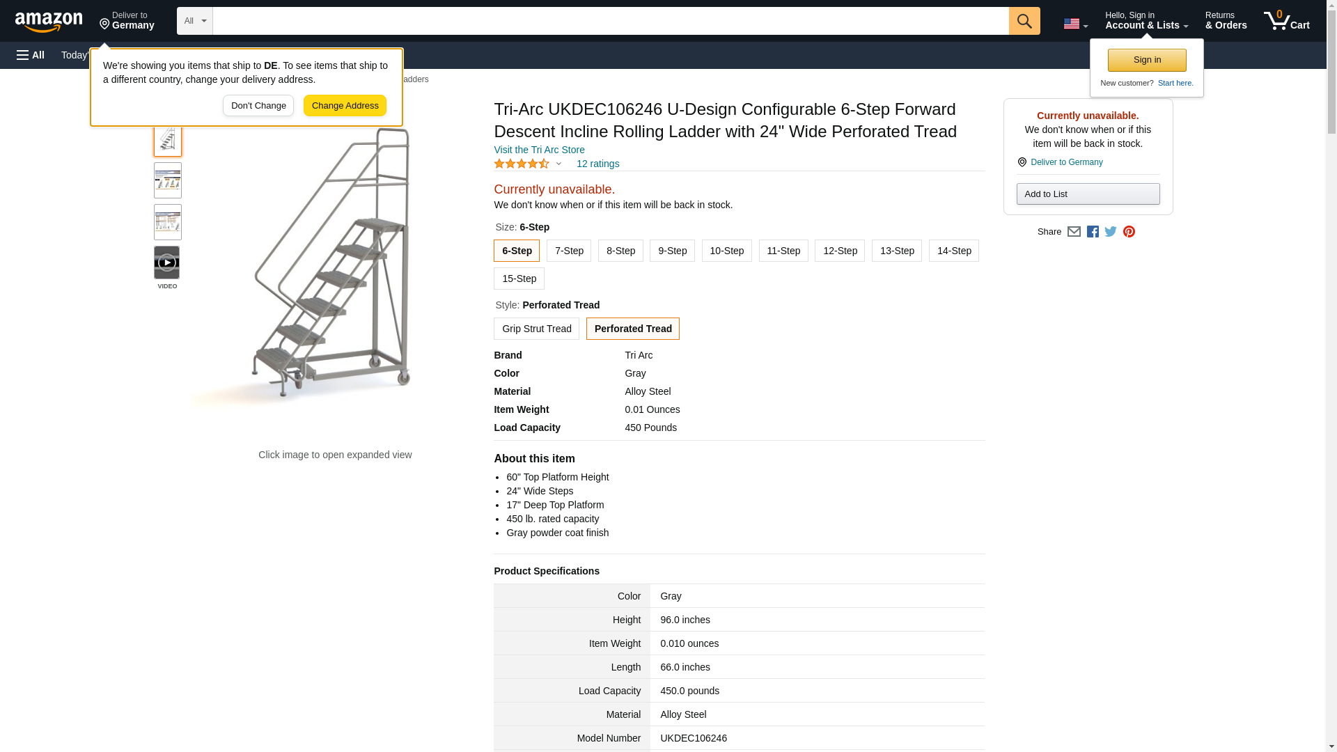 Tri Arc Mfg 6 Step Configurable Forward Descent Rolling Ladder - Perforated Tread UKDEC106246