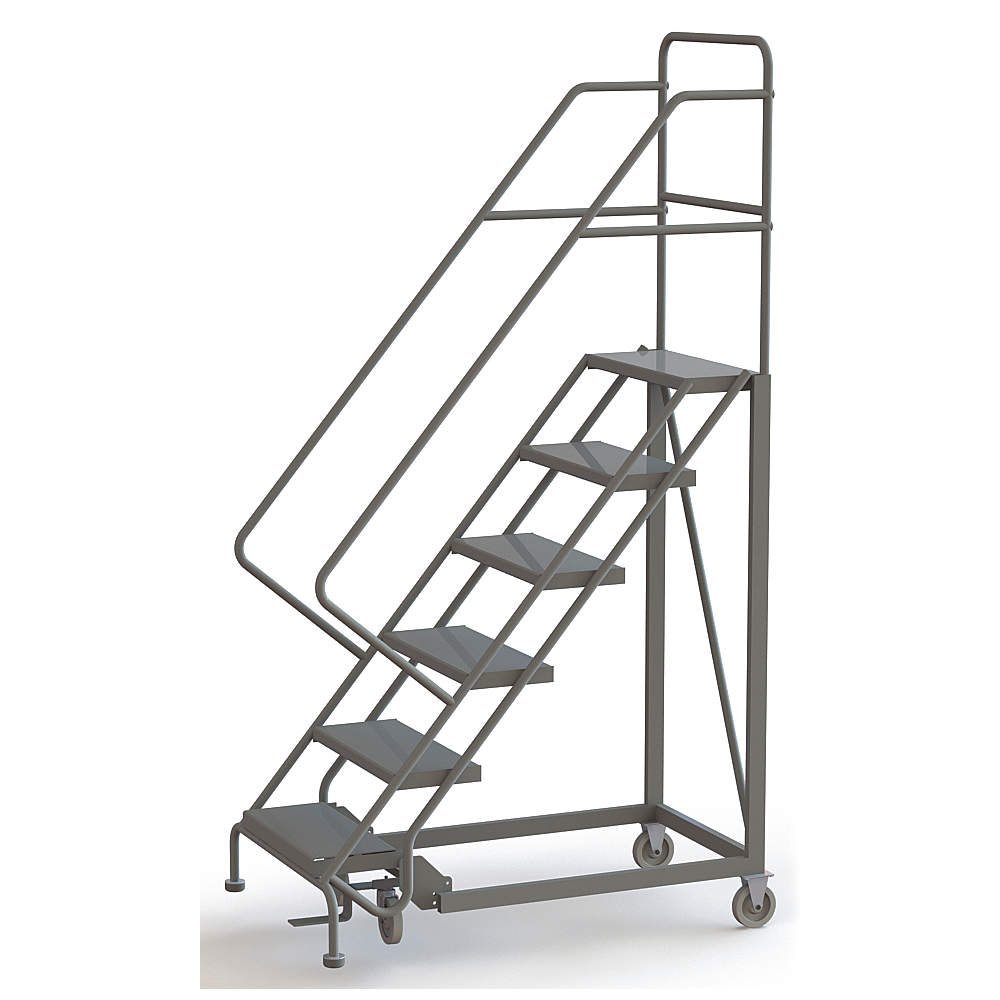 Tri-Arc UKDEC106246 U-Design Configurable 6-Step Forward Descent Incline Rolling Ladder with 24" Wide Perforated Tread