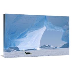 Global Gallery GCS-452321-2436-142 24 x 36 in. Emperor Penguin Tobogganing in Front of Iceberg, Antarctica Art Print