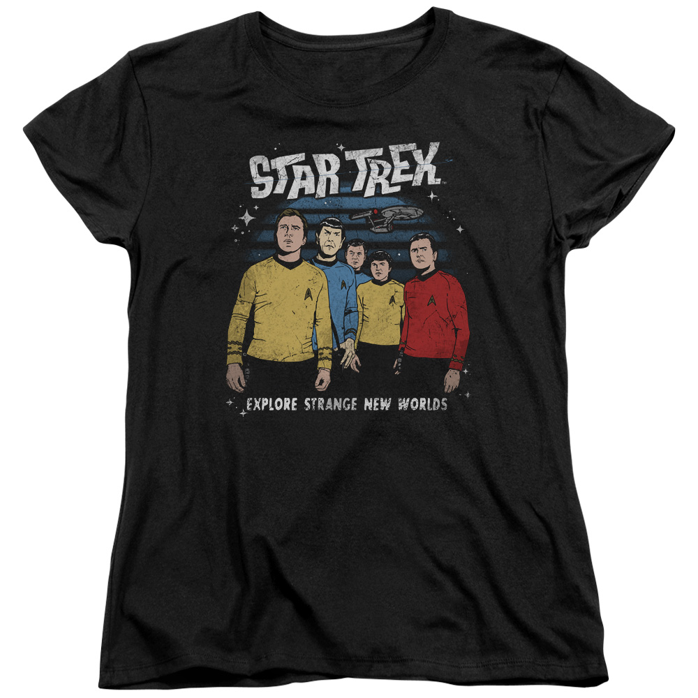 Trevco CBS1735-WT-2 Star Trek & Stange New World Womens Short Sleeve T-Shirt, Black - Medium