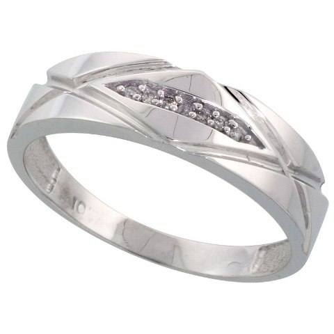 World Jewels 10K White Gold Men Diamond Wedding Band, Size 11