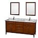 Wyndham Collection Hatton 72 inch Double Bathroom Vanity in Light Chestnut, White Carrera Marble Countertop, Undermount Square Sinks, and 24 inch Mirrors