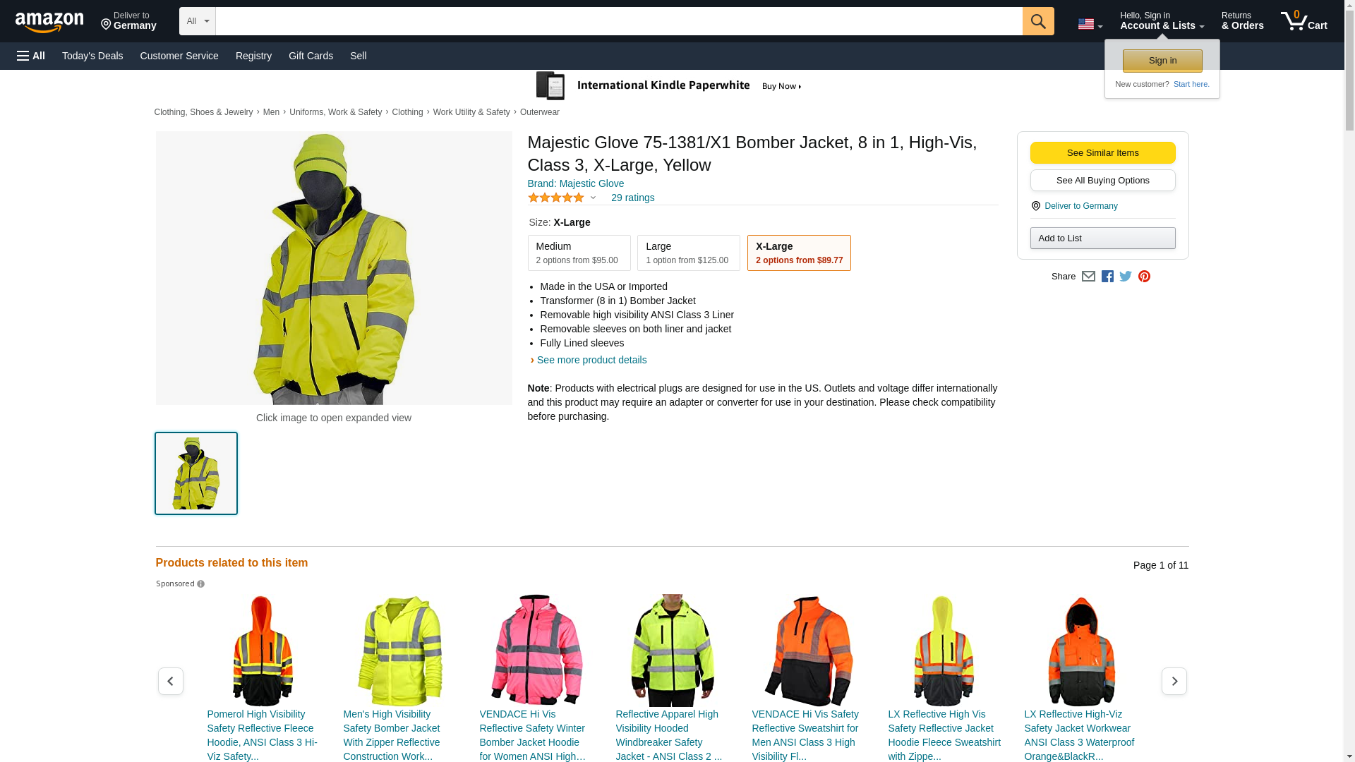 Majestic Bomber Jacket,8 In 1, Hv-Yellow,cls 3,x1 - 75-1381/X1