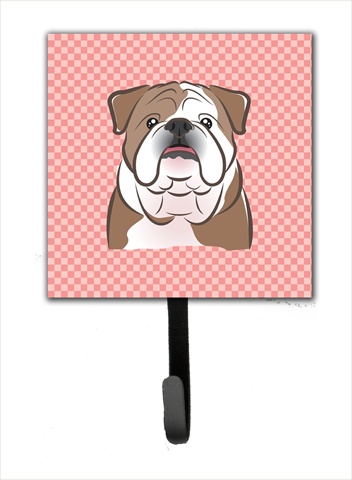 Carolines Treasures BB1219SH4 Checkerboard Pink English Bulldog Leash Or Key Holder, 4.25 W x 7 H In.
