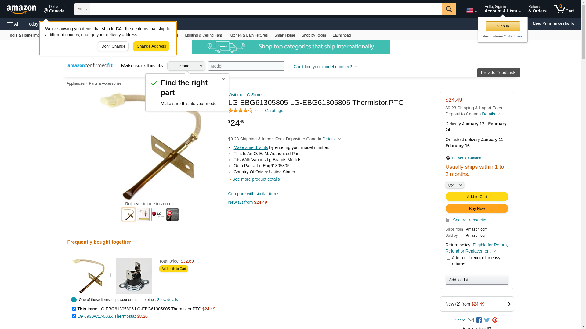 ![]() lgparts.com | EBG61305805 | 1 | 215 | 1 | 1 @ $75.95 |