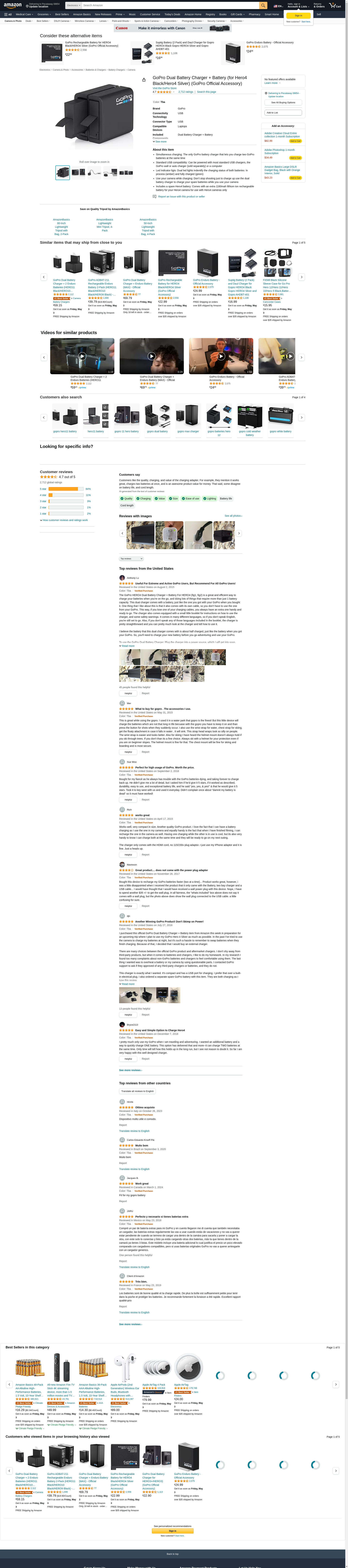 - Simultaneous Charging: The only GoPro battery charger that lets you charge two GoPro Batteries at the same time. Standard USB Compatibility: Can be powered with most standard USB chargers, the GoPro Wall or Auto Charger (sold seperately) or a computer.