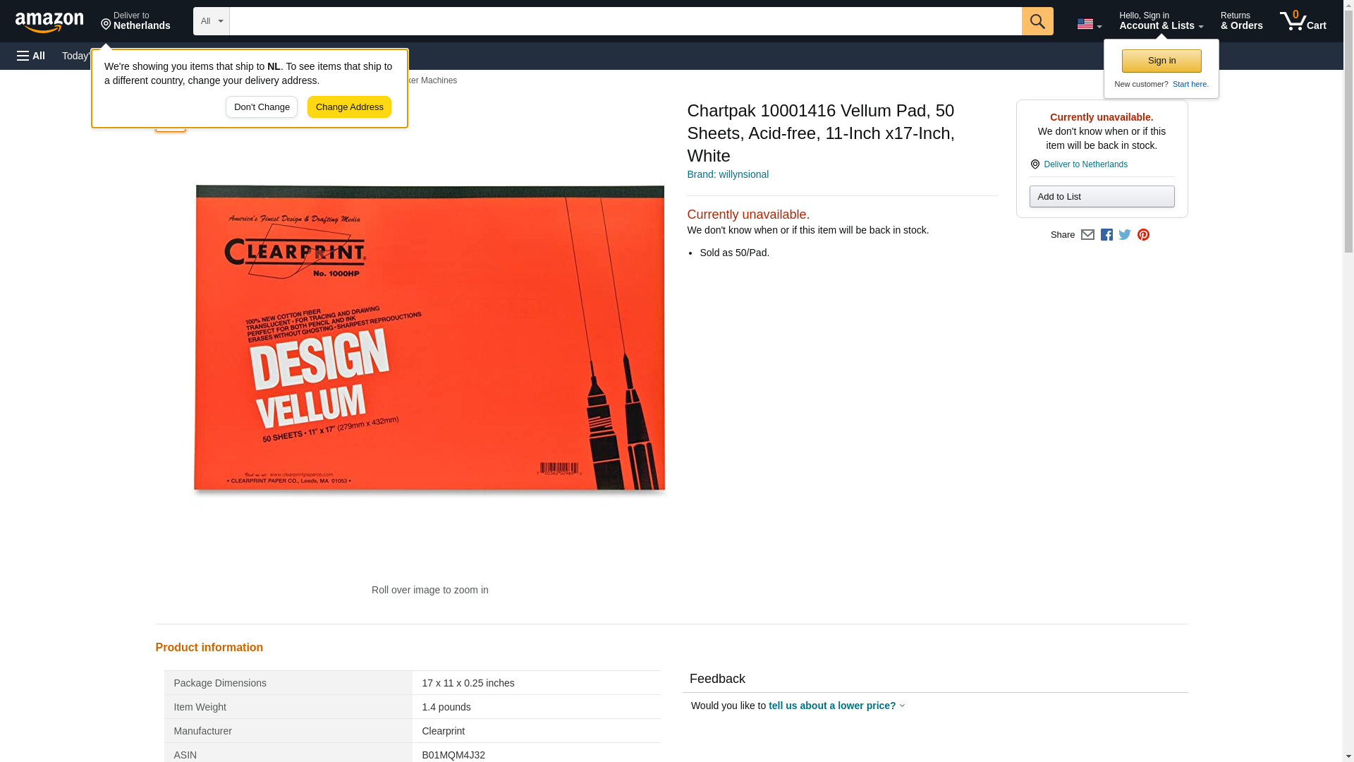 - Clearprint Vellum Pad, 50 Sheets, Acid-free, 11"x17", White