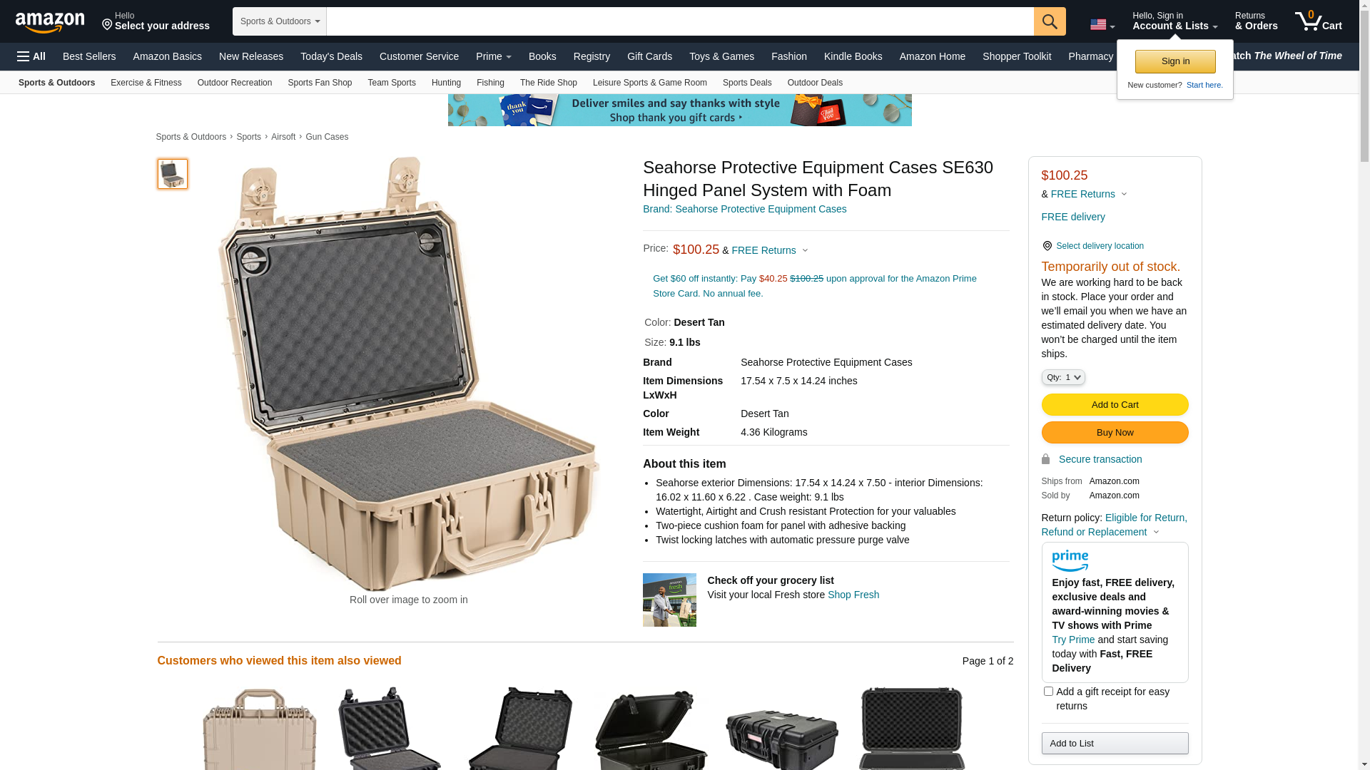 Seahorse Protective Equipment Cases SE630 Hinged Panel System with Foam, Desert Tan, 9.1 lb