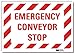 Safety Decal, Horizontal Rectangle, Number of Printed Sides 1, English, Sign Format Other Format, Sign Legend Emergency Conveyor Stop, Sign Legend Background Color White, Sign Legend Style Text