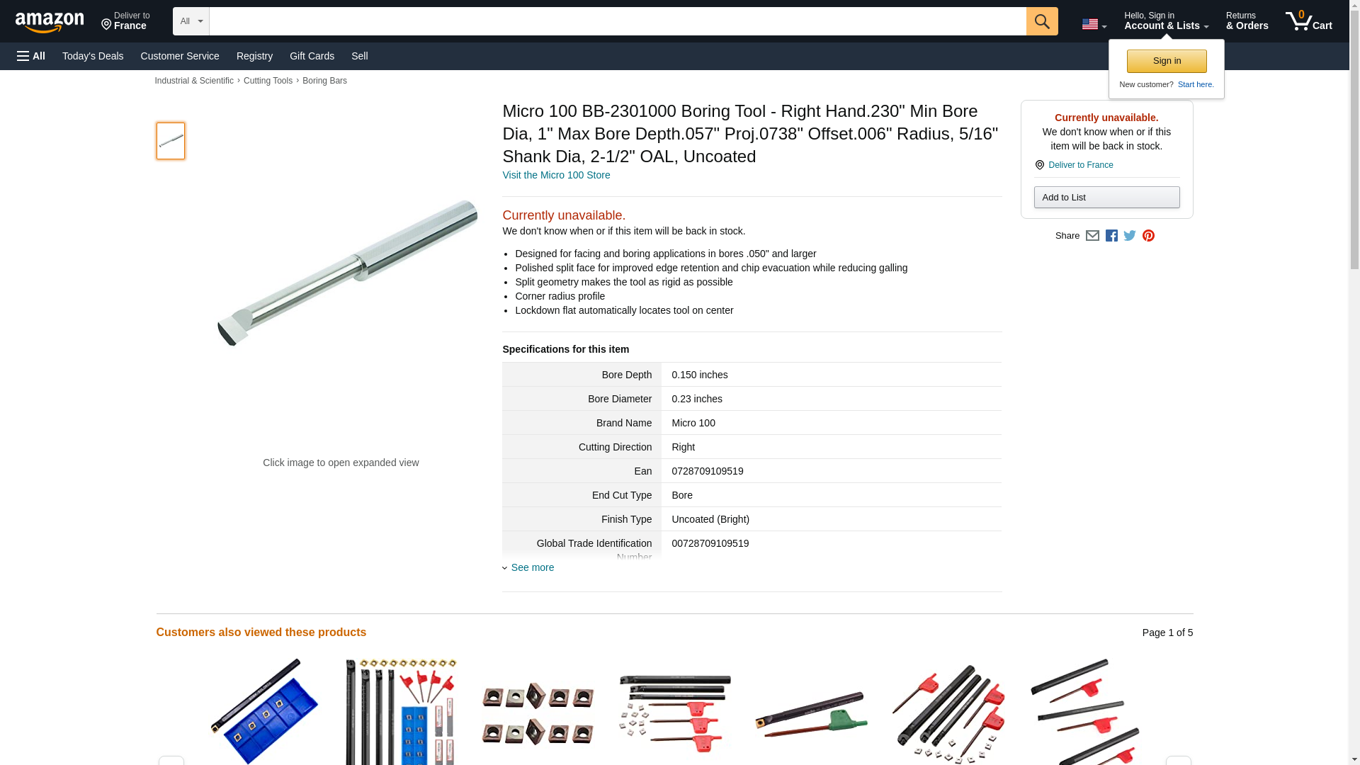 Micro 100 BB-2301000 Boring Tool - Right Hand, 1/4" Min Bore Dia, 1" Max Bore Depth, 057" Proj, 0738" Offset, 006" Radius, 5/16" Shank Dia, 2-1/2" OAL, Uncoated