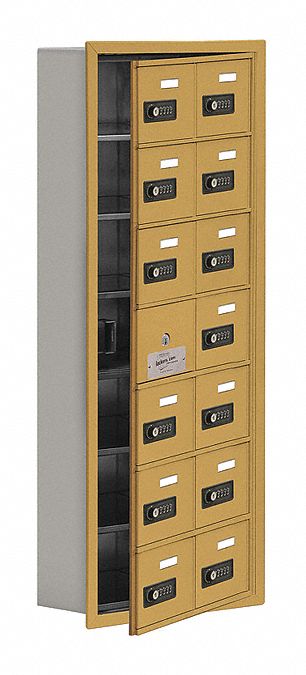 Salsbury Industries 19175-14GRC Cell Phone-Access Panel-7 Unit Recessed Mounted-Resettable Combo Locks with 5-Inch Diameter Compartments, Gold