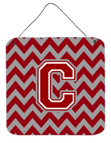 Caroline's Treasures CJ1049-CDS66 Letter C Chevron Maroon and White Wall or Door Hanging Prints, 6x6, Multicolor