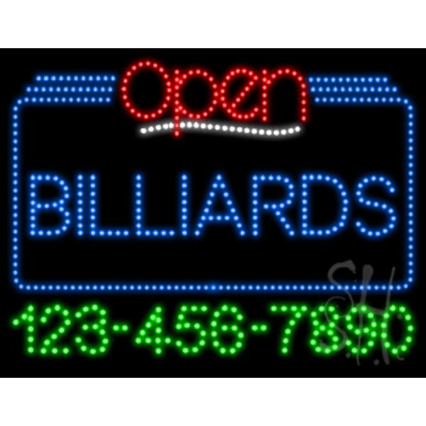 Everything Neon L100-6900 24 x 31 x 1 in. Billiards Open with Phone Number Animated LED Sign - Red, White & Blue