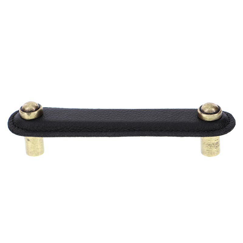 Sanzio Collection - Leather Collection 4" (102mm) Magrini Pull in Black Leather in Antique Brass by Vicenza Hardware - K1168-4-AB-BL | Knobs 4 Less