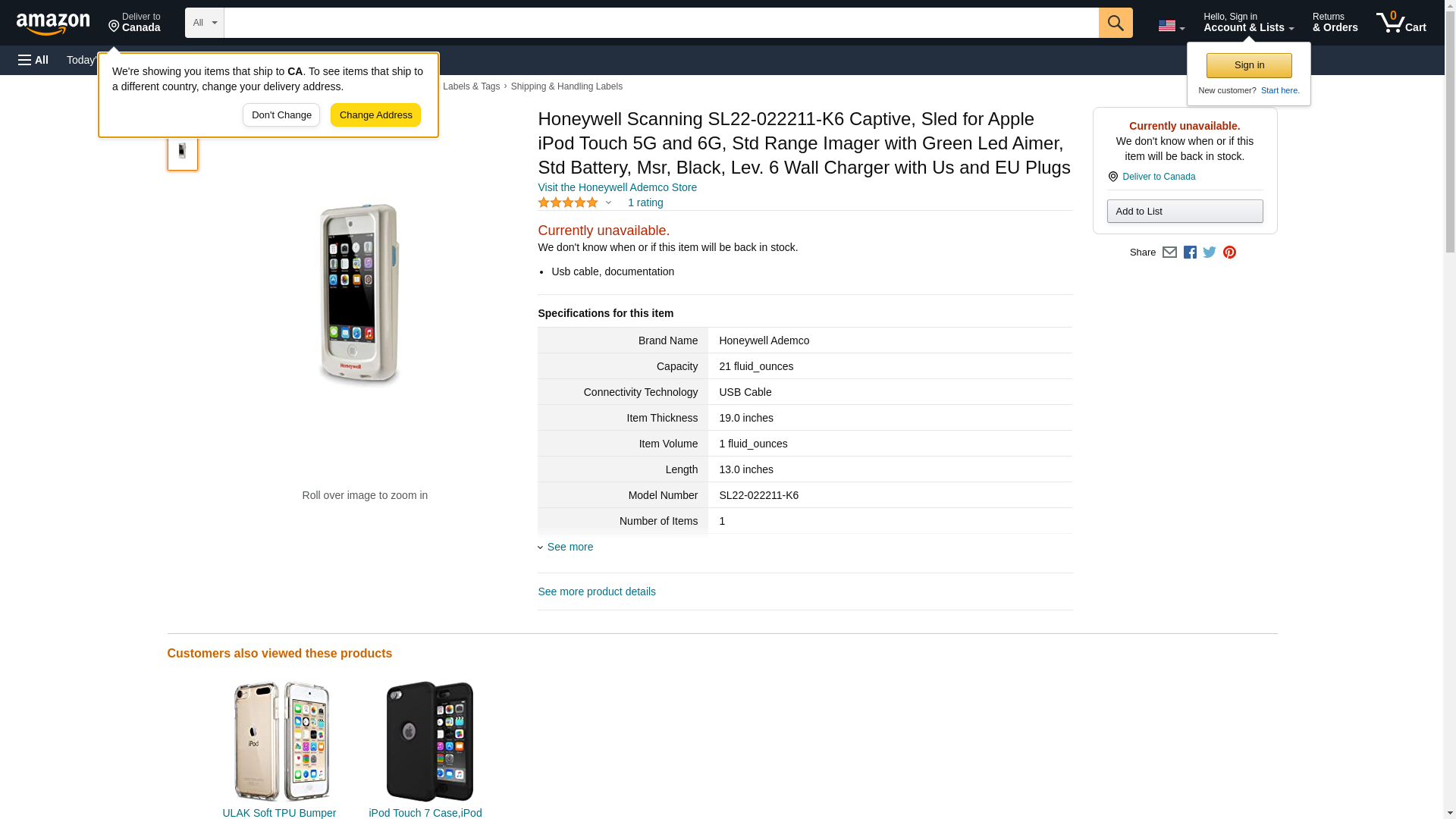 Honeywell Scanning SL22-022211-K6 Captive, Sled for Apple iPod Touch 5G and 6G, Std Range Imager with Green Led Aimer, Std Battery, Msr, Black, Lev. 6 Wall Charger with Us and EU Plugs