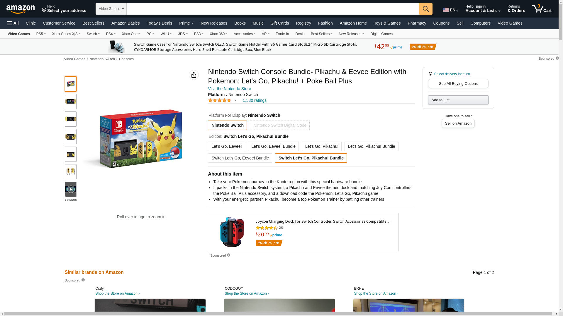 *The DLC (Downloadable Content), Trials/Subscriptions and/or Bundled Games may or may not be included and are not guaranteed to work* Take your Pokemon journey to the Kanto regionIt packs in the Nintendo Switch system, a Pikachu and Eevee themed dock and matching Joy-Con controllers, the Poke Ball Plus accessory, and a code for the Pokemon: Let's Go, Pikachu! game.With your energetic partner, Pikachu, become a top Pokemon Trainer by battling other trainers!