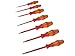 Wera Kraftform Plus Set of 7 screwdrivers, which are each individually tested for dielectric strength under a load of 10,000 volts to ensure safe working with load up to 1,000 volts. The premium Lasertips bite into the screw head, reducing cam out.4 x Slotted: 2.5mm, 3.5mm, 4.0mm, 5.5mm.2 x Pozi: PZ1, PZ2.1 x Phillips: PH2.
