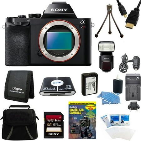 Sony 36.3 MP a7R ILCE7R/B ILCE7RB ILCE7R Full-Frame Interchangeable Digital Lens Camera - Body Only w/ SEL35F28 Full Frame Lens, 64GB Extreme SD Memory Card, Camera Battery, Carrying Case & More