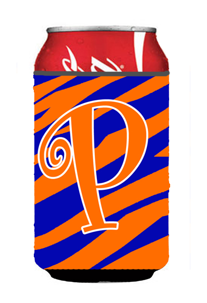 Carolines Treasures CJ1036-PCC Letter P Initial Monogram - Tiger Stripe Blue And Orange Can Or Bottle Hugger