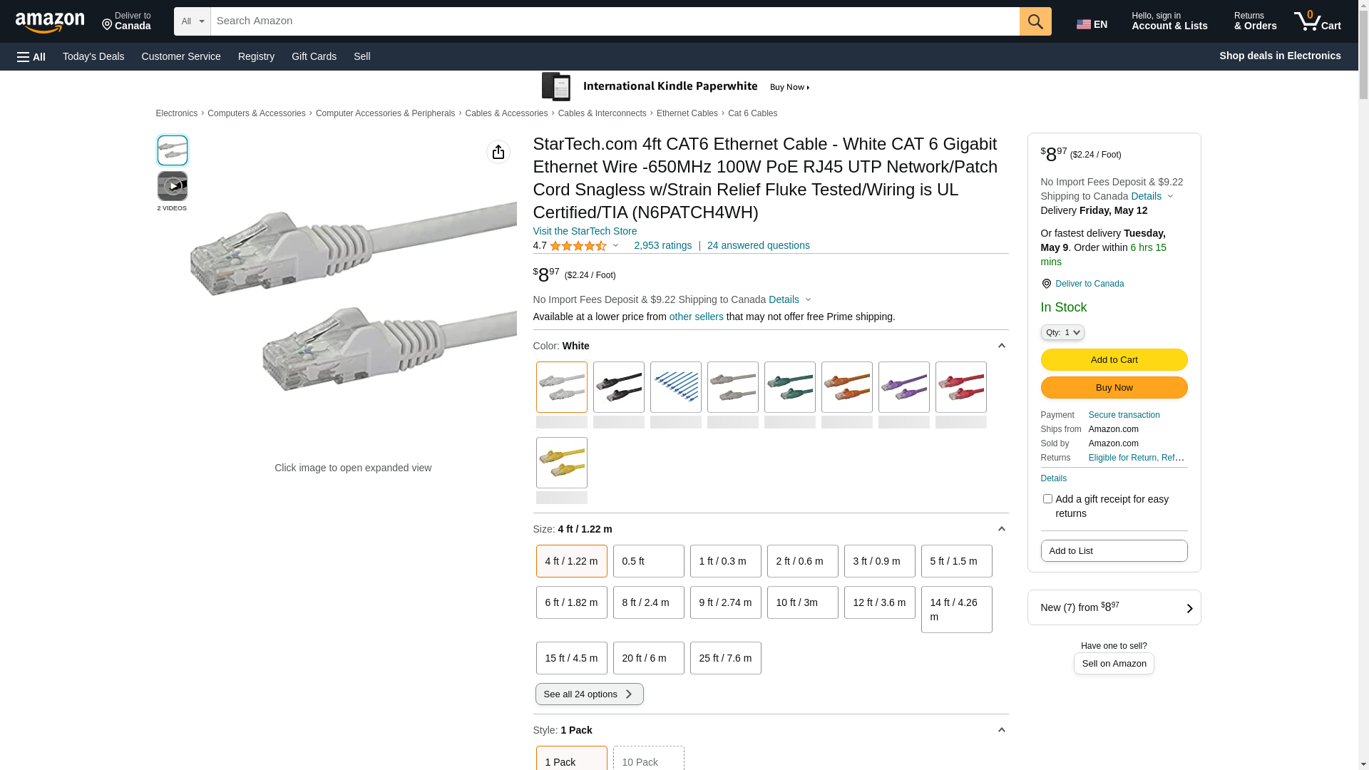 Buy Startech N6PATCH4WH As low as $5.61 in bulk In stock StarTech.com 4ft White Cat6 Patch Cable with Snagless RJ45 Connectors - Cat6 Ethernet Cable - 4 ft Cat6
