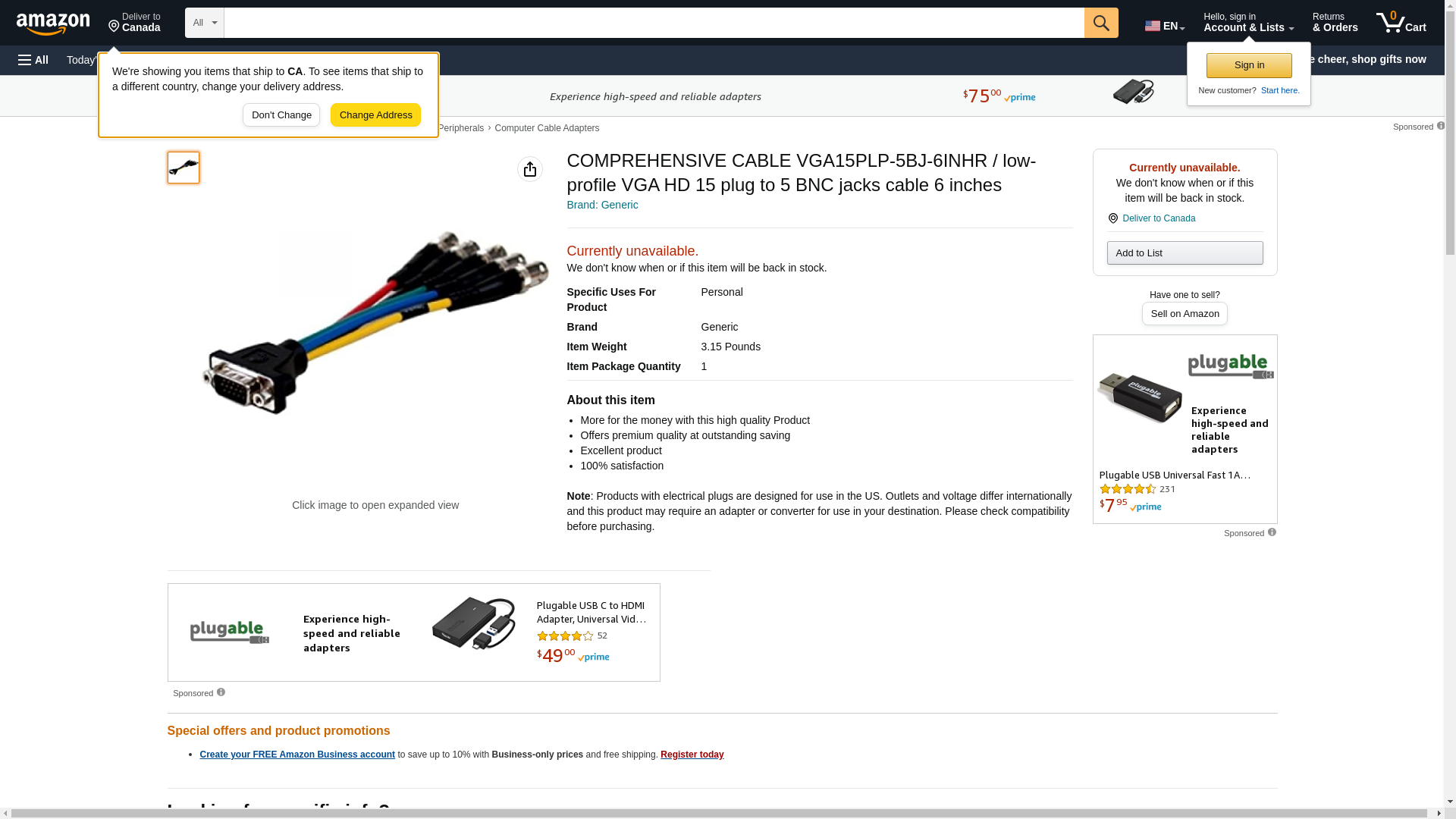 - COMPREHENSIVE CABLE VGA15PLP-5BJ-6INHR VGA HD15M TO 5 BNCF CABLE .5FT PRO AV/IT 26 AWG-LIFETIME WARRANTY