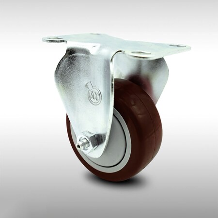 Stainless Steel Polyurethane Swivel Top Plate Rigid Caster w/3.5" x 1.25" Maroon Wheel - 300 lbs Capacity/Caster - Service Caster Brand