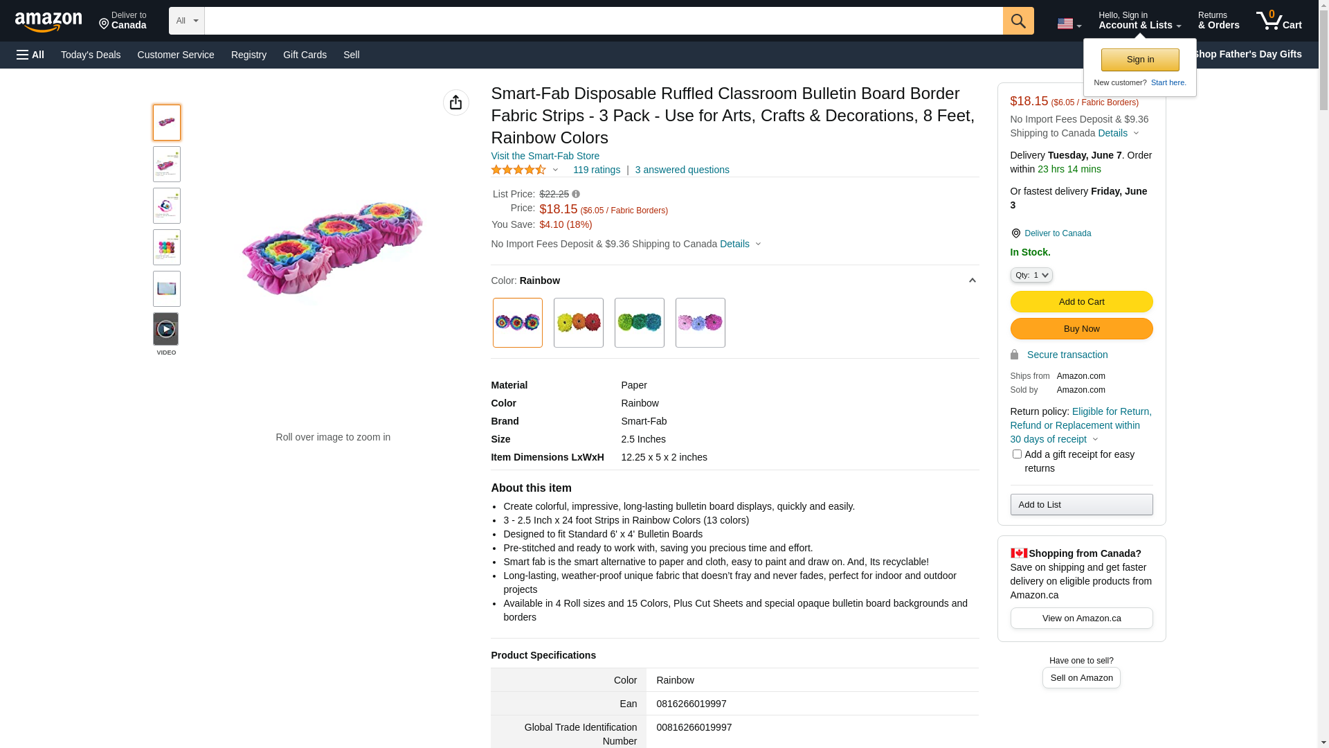Smart-Fab Pre-Stitched Ruffled Craft Fabric Bulletin Board Borders, Rainbow Colors, School Teacher Classrooms, Outlasts Paper (Pack of 3)