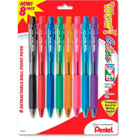 Pentel Bk440bp8m Wow! Retractable Ballpoint Pen, 1Mm, Assorted Barrel, Assorted Ink, 8/Pack
