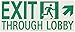 - Each rigid sign features a running man right graphic, with an upper right arrow and "Exit Through Lobby" displaying the direction of travel for safe egress