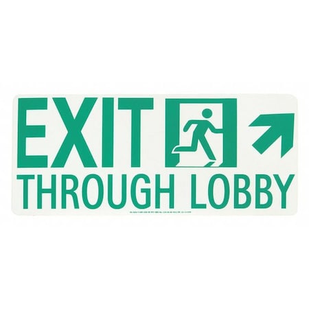 Jessup Glo Brite 50R-4SN-UR Rigid Photoluminescent "Running Man" "Exit Through Lobby" Sign (7-Inch by 16-Inch), Right Runner/Up Right Arrow