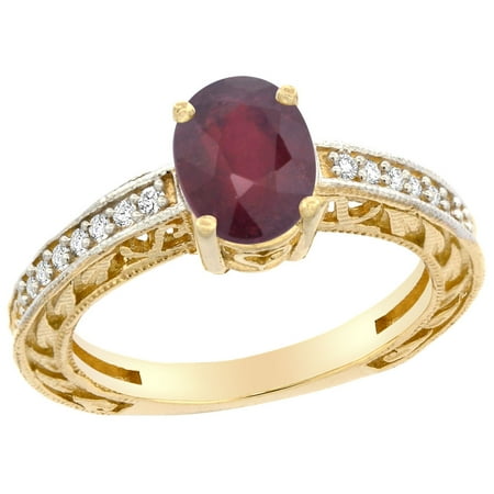10K Gold Natural HQ Ruby Ring Oval 8x6 mm Diamond Accents, sizes 5 - 10