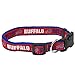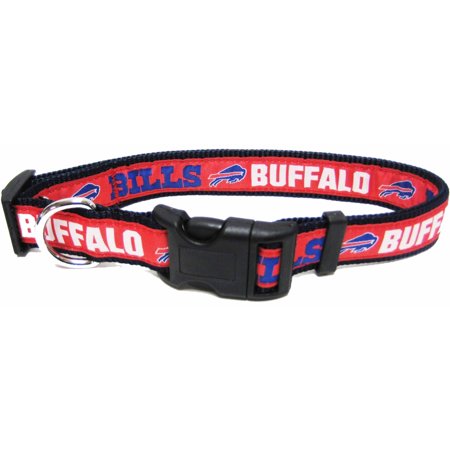 <br /> <b>Pets First NFL Buffalo Bills Pet Collar:</b> <ul> <li>Officially-licensed</li> <li>Team name, logo and logotype ribbon sewn onto a contrasting nylon web</li> <li>Quick-release snap lock plastic buckle</li> <li>Silver D ring to attach your leash</li> <li>Fits with most harnesses and leashes</li> <li>Easily adjustable for ultimate comfort and safe fit</li> <li>Looks great with matching Pets First items: leashes, jerseys and more</li> <li>Small: 12" x 0.5" x 0.1"</li> <li>Medium: 18" x 0.75" x 0.1"</li> <li>Large: 30" x 1" x 0.1"</li> </ul>