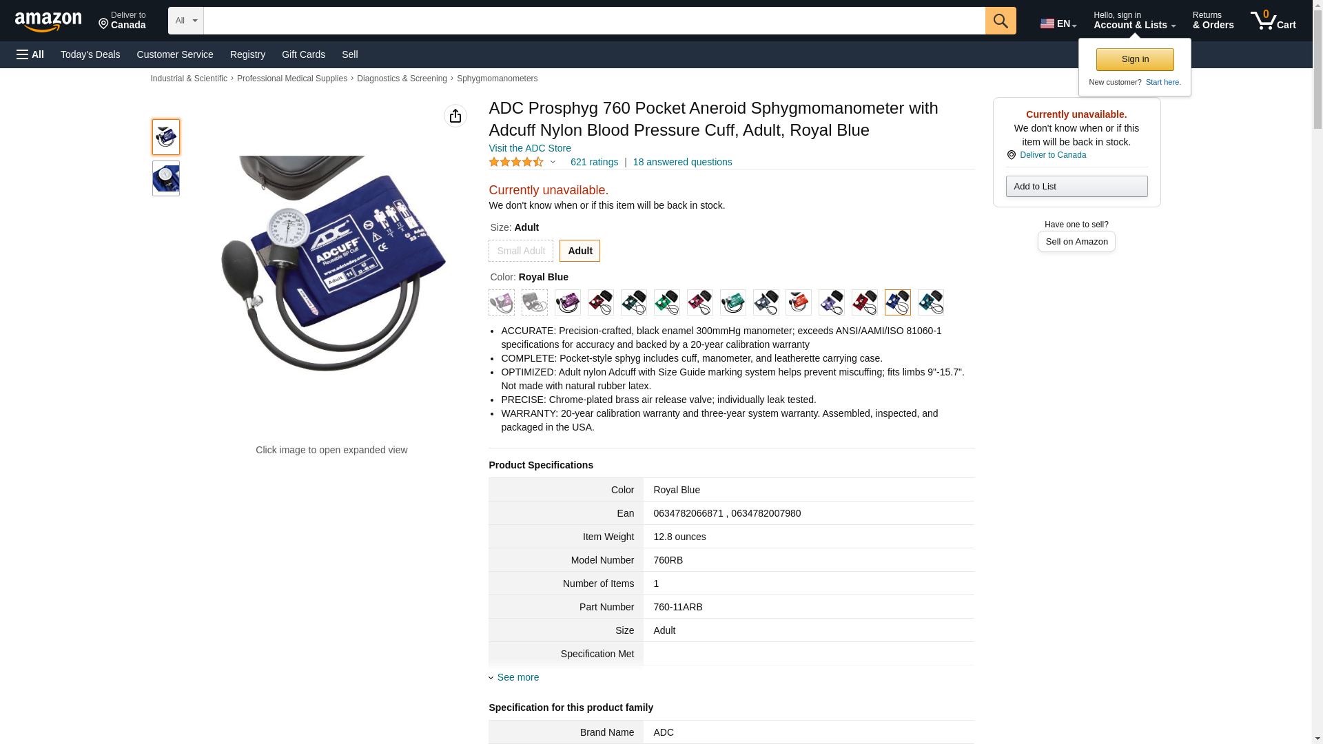 PROSPHYG 760 Aneroid Sphyg, Adult, Royal BlueProsphyg™ 760 SERIESOur most popular aneroid, the 760 is the model of choice for demanding institutions. The 760 series features: Contemporary black enamel 300mmHg manometer provides day-in, day-out dependability exceeds industry standards Adcuff™ nylon cuff with ADC’ s proprietary Size Guide™ marking system, prevents mis-cuffing Chrome-plated brass air release valve Leatherette carrying case with durable nylon zipper Assembled, inspected, and packaged in the U.S.A. from foreign components Product photo may not exactly match the product offered for sale. Please refer to the product description.