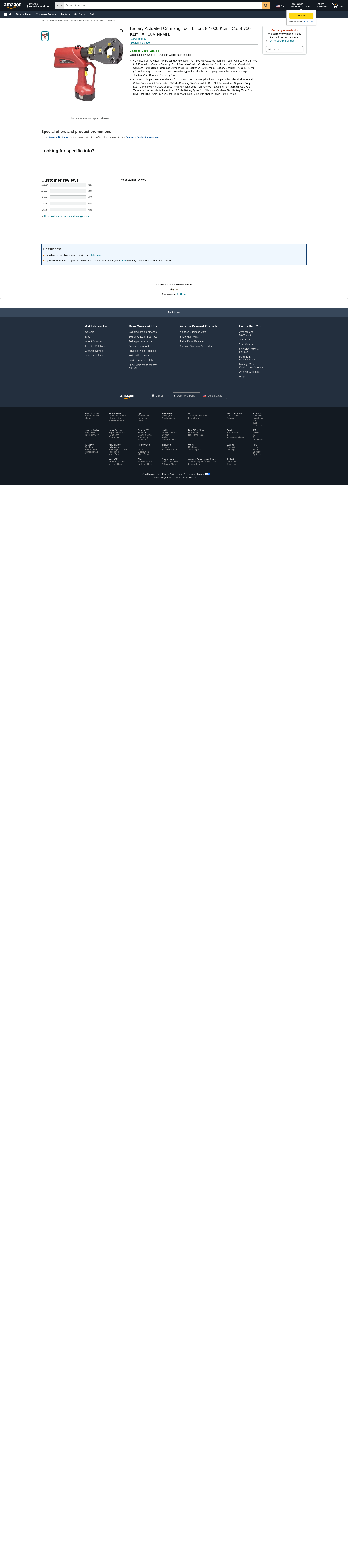 Battery Actuated Crimping Tool, 6 Ton, 8-1000 Kcmil Cu, 8-750 Kcmil Al, 18V Ni-MH.