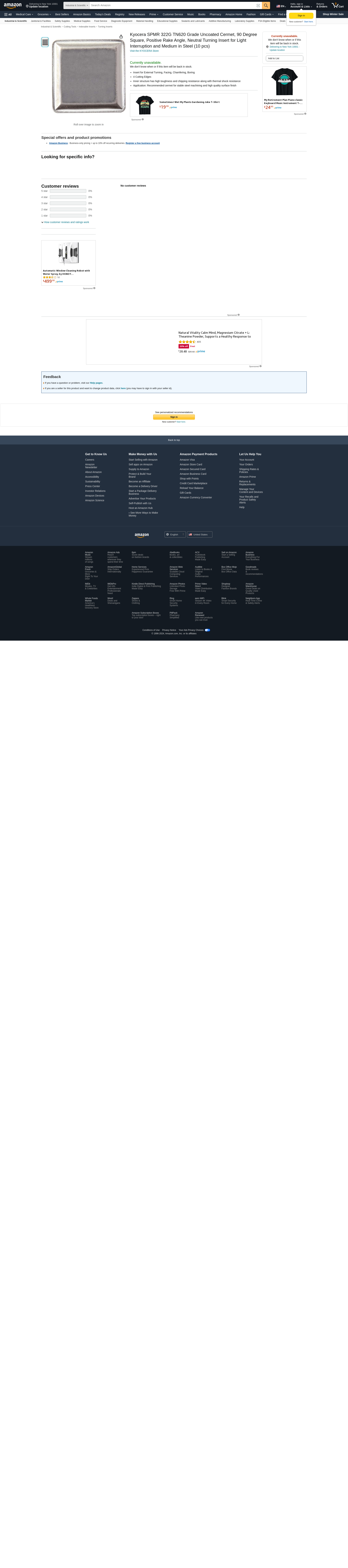 Kyocera SPMR 322G TN620 Grade Uncoated Cermet, 90 Degree Square, Positive Rake Angle, Neutral Turning Insert for Light Interruption and Medium in Steel (10 pcs)