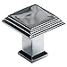 WH-9261CH Finish: Chrome Features: -Includes screws. -Accessories include setscrew that is interchangeable 0.09" allen head. -Type: Bath hardware. -Solid zinc die cast. -Screw: 8.25", 1" and 1.5". -9200 Series collection. Knob Type: -Square Knob. Style: -Modern. Fasteners Included: -Yes. Dimensions: Overall Height - Top to Bottom: -1.125". Overall Width - Side to Side: -1.125". Overall Depth - Front to Back: -1.125". Overall Product Weight: -0.15 lbs.