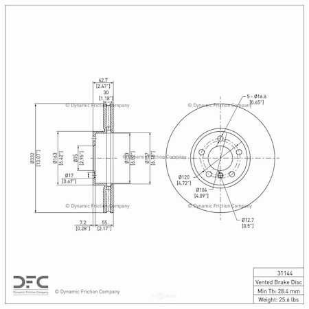Dynamic Friction Company Front Disc Brake Rotor 600-31144 (1) For 2007-2018 BMW X5, 2011-2019 BMW X6