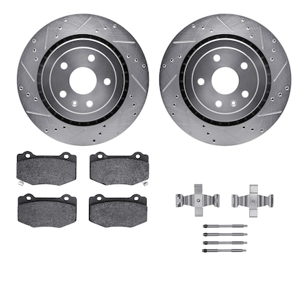 Dynamic Friction Company Rear Brake Rotors-Drilled and Slotted-Silver with 5000 Advanced Brake Pads includes Hardware 7512-47044