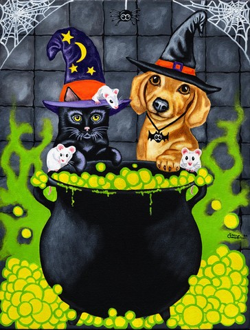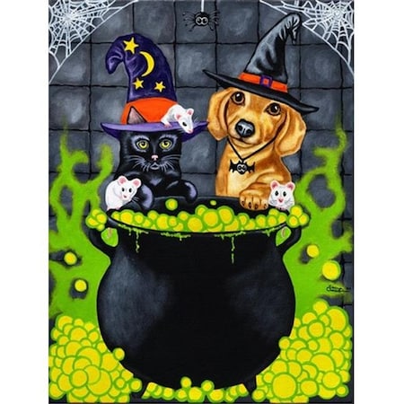 Caroline's Treasures AMB1434GF Brewing up Trouble Halloween Dachshund Garden Flag Mailbox Flag Decorative Yard Flag Banner Outside Patio Artwork Yard Flower Beds, Garden Size, Multicolor