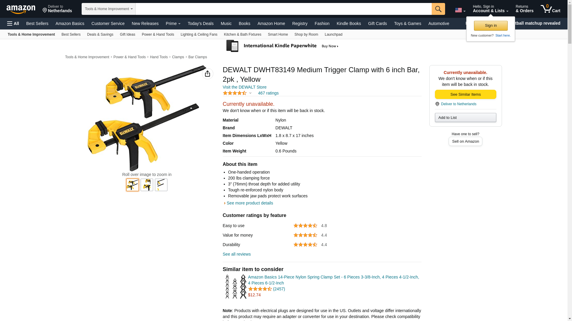 DEWALT DWHT83149 Medium Trigger Clamp with 6 inch Bar, 2pk , Yellow