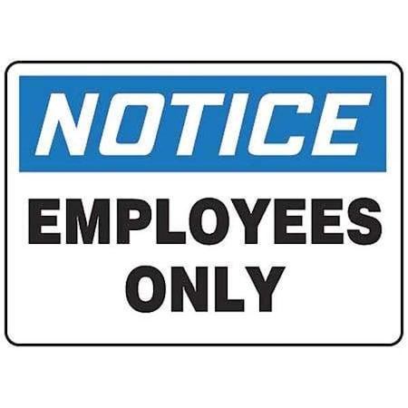 Accuform MADC804VP, 10" x 14" OSHA Notice Safety Sign "Employees Only" Plastic Features: Light abrasion and chemical resistance that will not rust, chip, or crack Fluted polypropylene .160" thick Requires mounting to a wall or fence Withstands wet, damp, and other limited environmental exposure Finished with square corners and four mounting holes